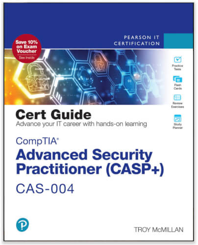 CompTIA Advanced Security Practitioner (CASP+) CAS-004 Cert Guide focuses specifically on the objectives for the CompTIA Advanced Security Practitioner (CASP+) CAS-004 exam. Leading expert Troy McMillan shares preparation hints and test-taking tips, helping you identify areas of weakness and improve both your conceptual knowledge and hands-on skills. Material is presented in a concise manner, focusing on increasing your understanding and retention of exam topics.